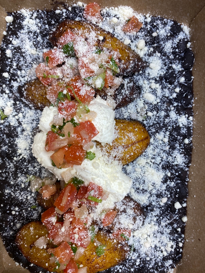 Fried ripe sweet plantains with cream and cheese