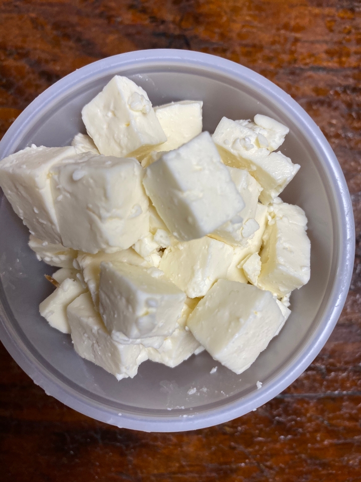 White corn tortillas crammed with lots of melty cheese and chicken thigh. Severed with side salad, cream and avocado.