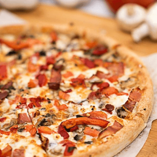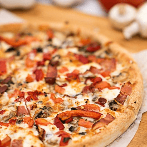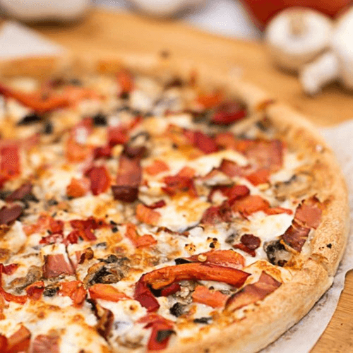 Pizza sauce base, ham, pepperoni, Italian sausage, beef & bacon bits