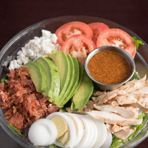 Chicken breast, avocado, blue cheese, bacon, tomato, egg & lettuce with Italian dressing