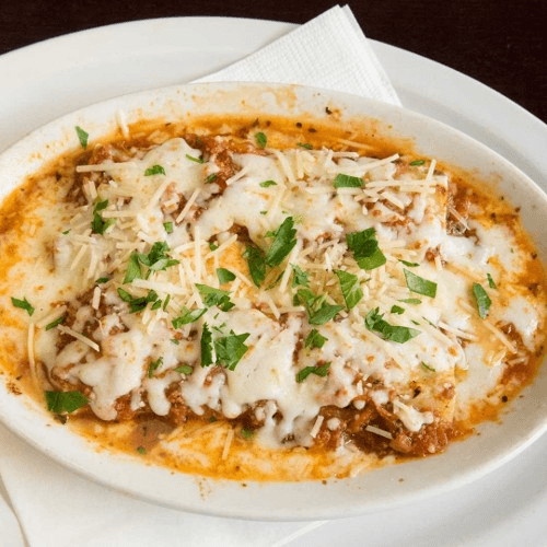 Pasta layered with house-made bolognese sauce, ricotta, provolone, Romano, parmesan, and mozzarella