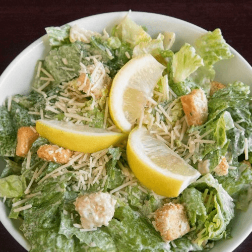 Romaine lettuce tossed with Caesar dressing, croutons, lemon & parmesan cheese
