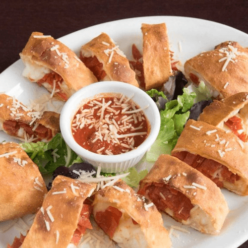Pepperoni, mozzarella and parmesan cheese rolled up in strips of our famous pizza dough & baked to perfection. Served with marinara sauce