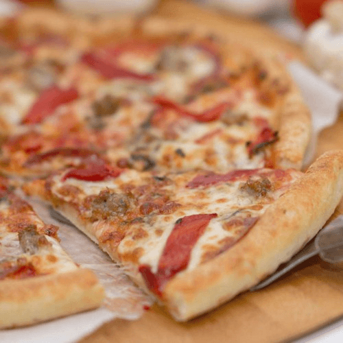 Fire roasted red peppers, Italian sausage, fresh basil, salami, garlic, mozzarella cheese & pizza sauce