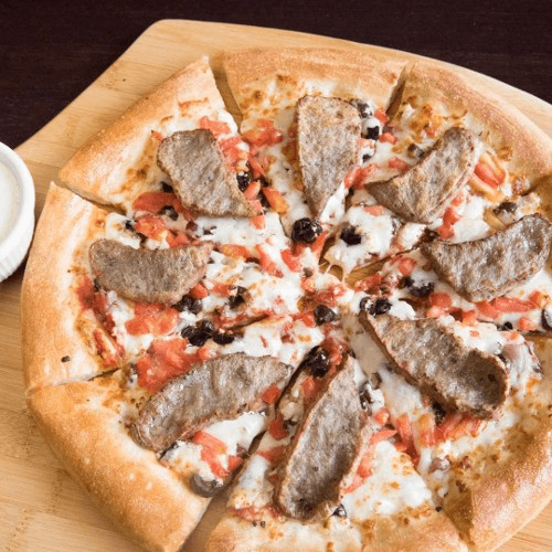 Onions, tomatoes, Greek feta, Greek olives & mozzarella topped with Greek gyro meat, served with a side of homemade tzatziki sauce