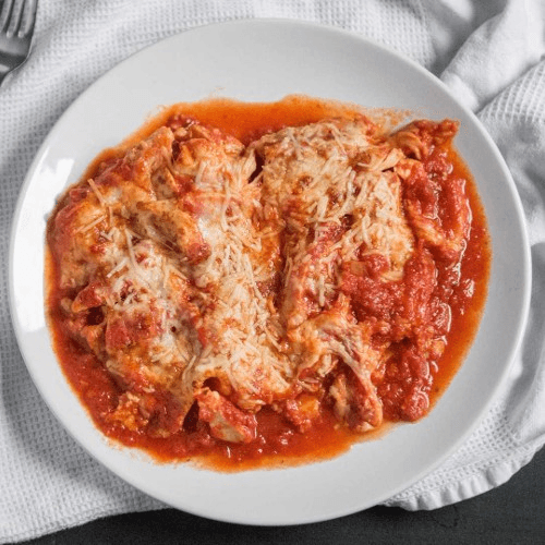 Delicious pieces of chicken parmesan covered with home made marinara sauce and the best mozzarella cheese.