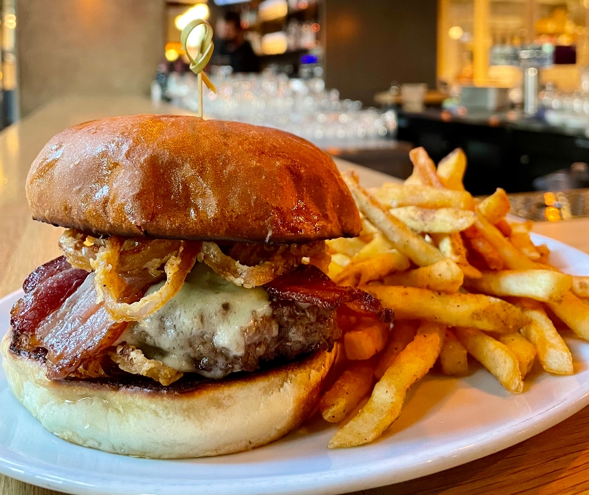 beef patty, applewood bacon, blue cheese, secret sauce, brioche bun, fries
