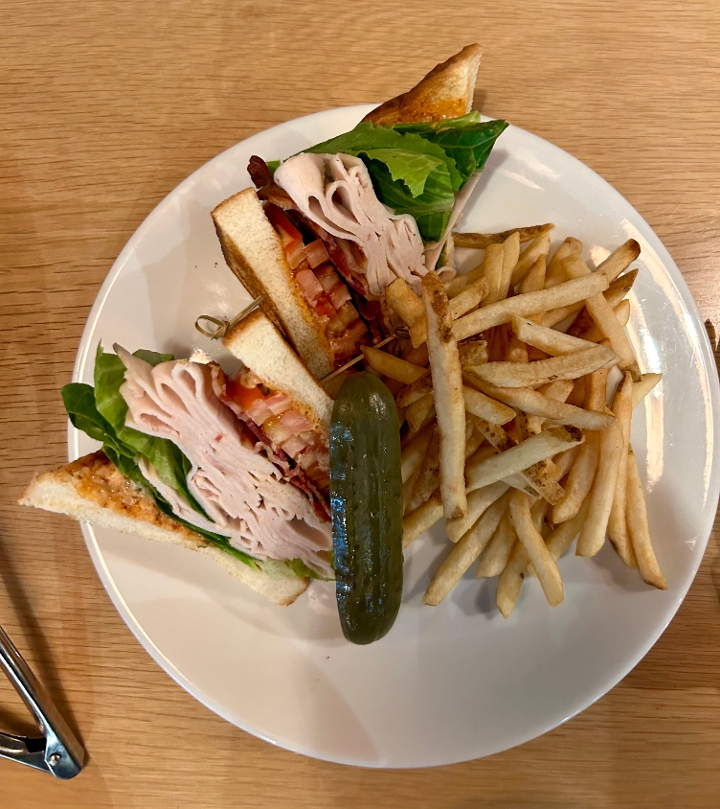 turkey, bacon, american cheese, lettuce, tomato, secret sauce, texas toast, fries