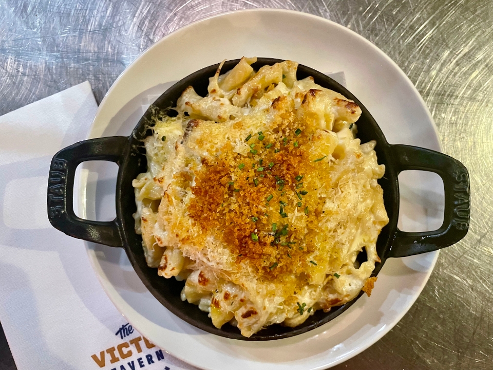 campanelle pasta, cream, beecher's flagship, parmigiano, truffle, pangrattato, chive