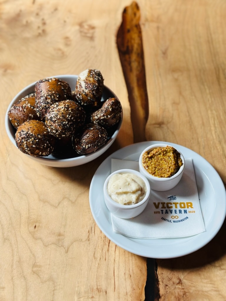 brown butter cheese sauce, stone ground mustard