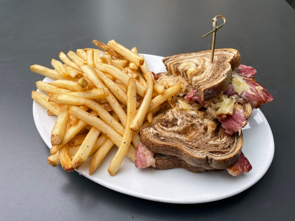 corned beef, sauerkraut, swiss cheese, secret sauce, rye bread, fries