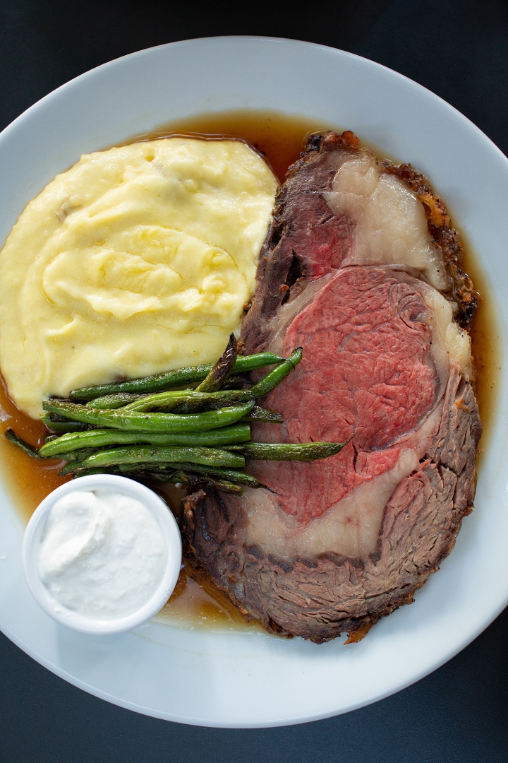 whipped yukon potatoes, broccolini, horseradish cream, au jus
