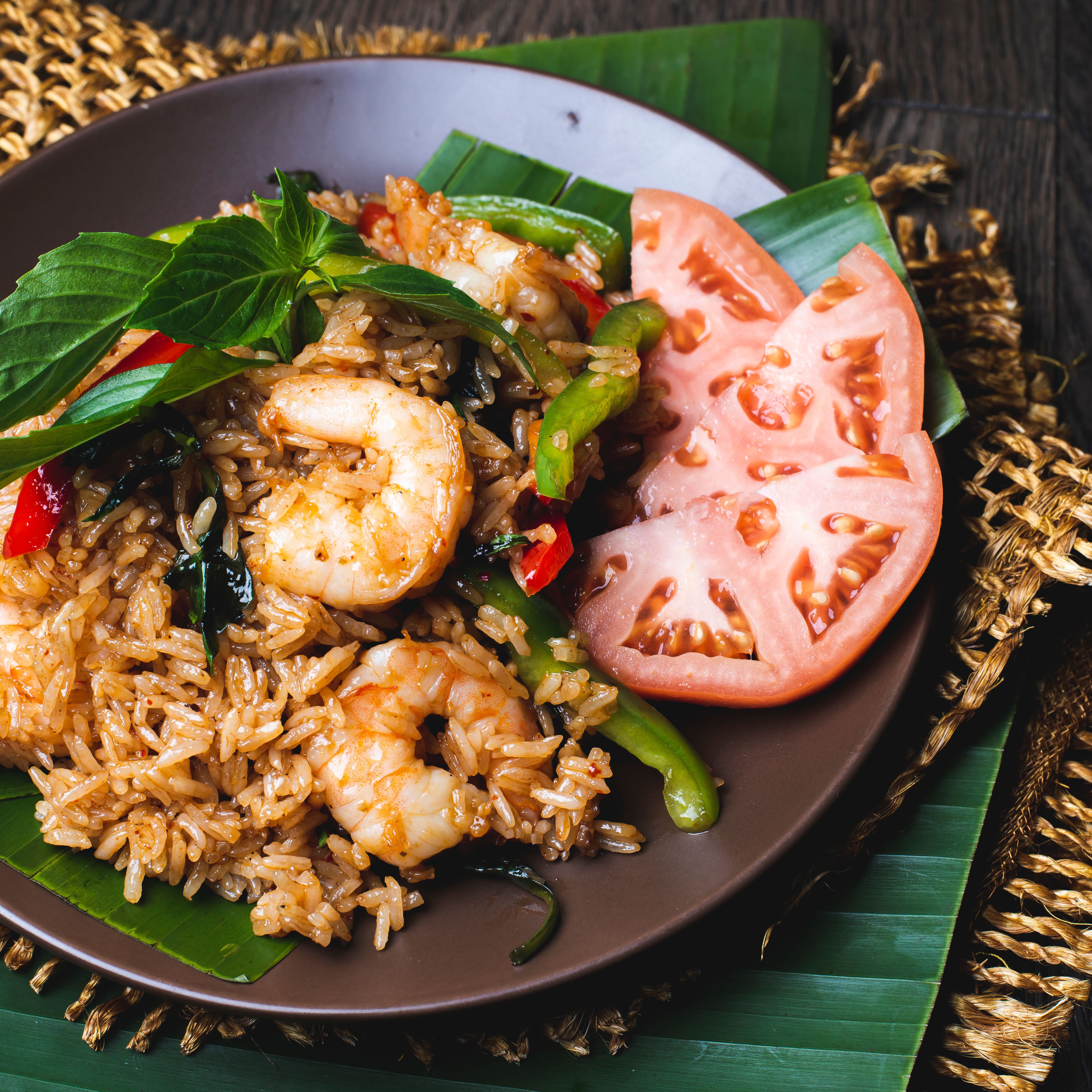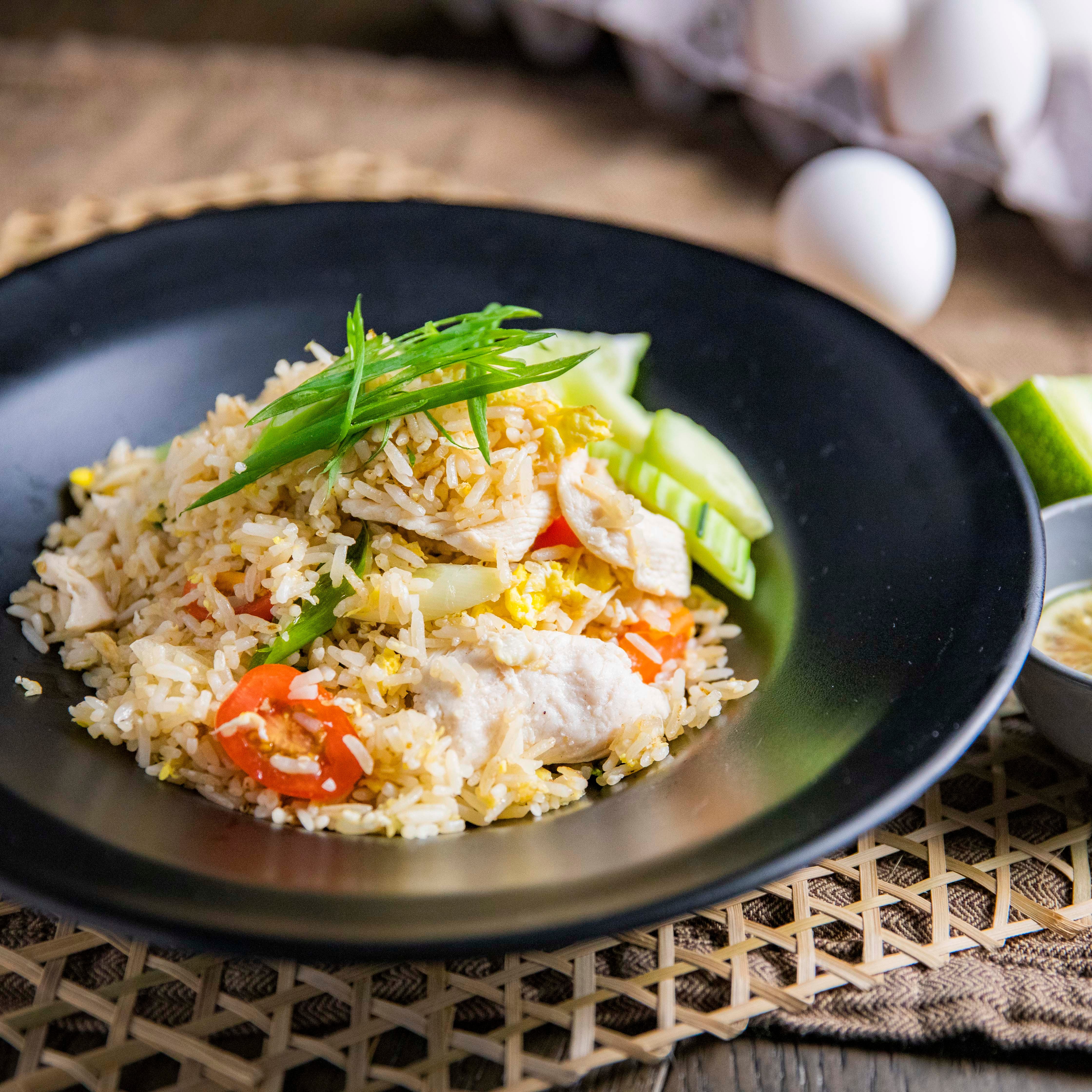 Excellent as a single meal or shared family style, our Thai fried rice combines jasmine rice, egg, and a mix of white onions, tomatoes, and assorted vegetables stir-fried in a hot wok. (GF) ** PARTY TRAY SIZE - GOOD FOR 4-6 PEOPLE **