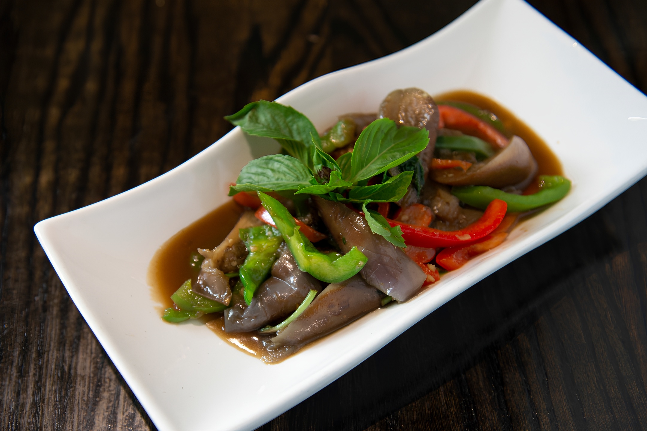 This dish combines Chinese eggplant with basil, garlic, black bean sauce, and bell peppers. ** RICE IS NOT INCLUDED WITH THIS DISH **