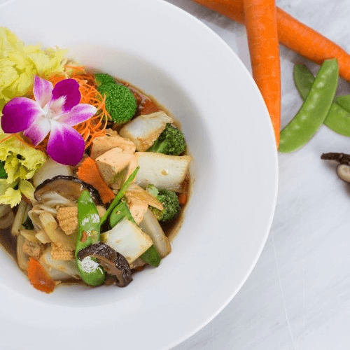 A healthy combination of vegetables, tofu and Shiitake mushrooms tossed in our hot, seasoned wok for just the right color and crunch.