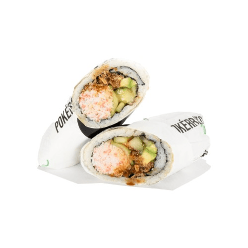 Spicy crab, tempura shrimp, avocado, tamago, cucumber, carrot wrap with soy paper, creamy mayonnaise.