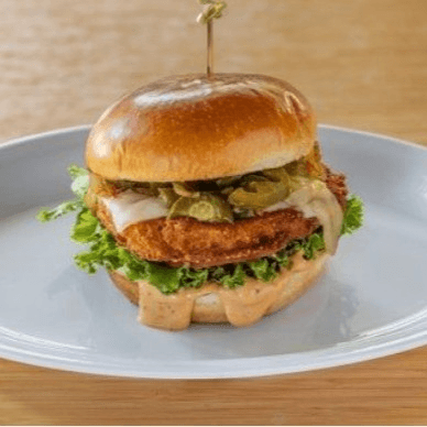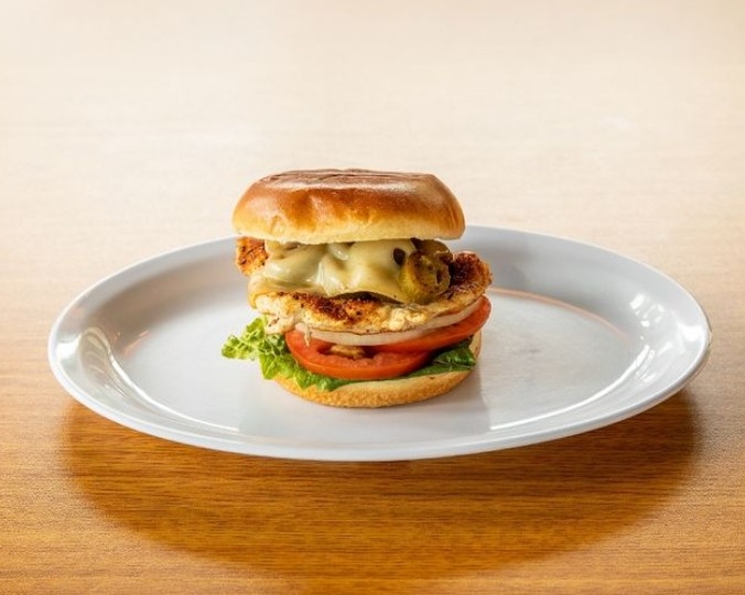 5 Oz grilled chicken breast, pickled jalapenos, blackening seasoning, pepper jack cheese, with spicy house sauce on brioche bun.