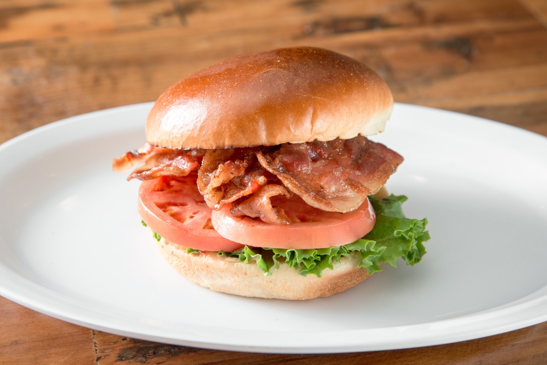 3 strips of bacon, lettuce, tomatoes and house sauce on brioche bun.