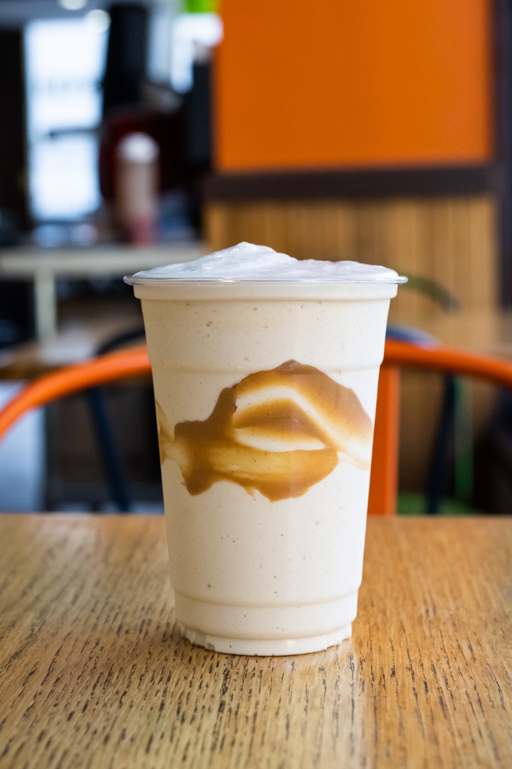 Old fashioned vanilla ice cream mixed with 3 pumps of salted caramel syrup and malted milk.
