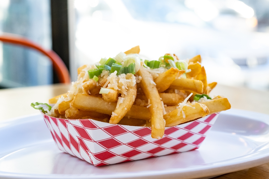 1/4 lb. of fresh Angus beef patty, bacon, pineapple, jalapenos, Tillamook cheddar cheese, lettuce, tomato, onions, pickles with house sauce on brioche bun.