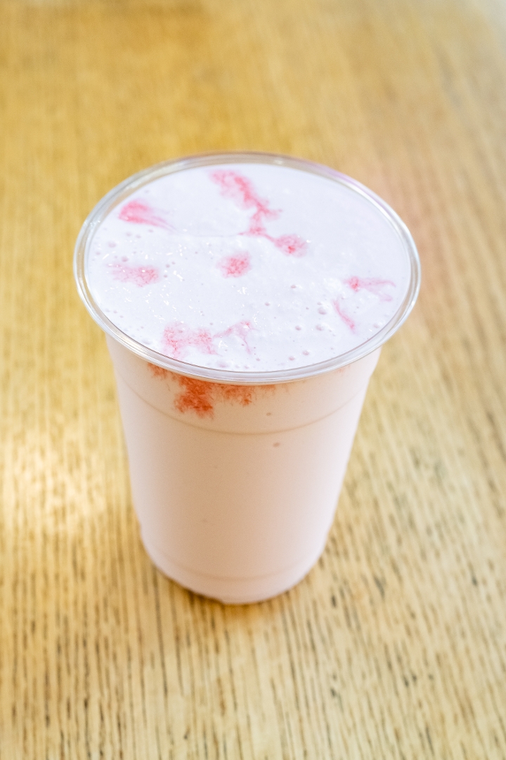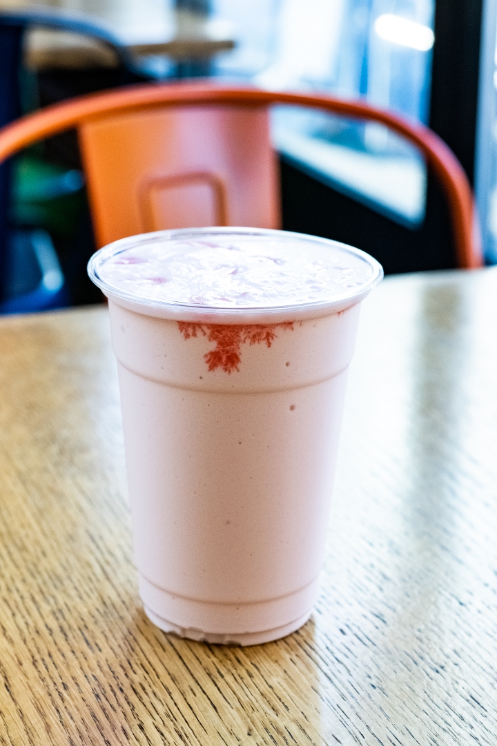 Old Fashioned vanilla ice cream mixed with 3 pumps of strawberry syrup & milk.