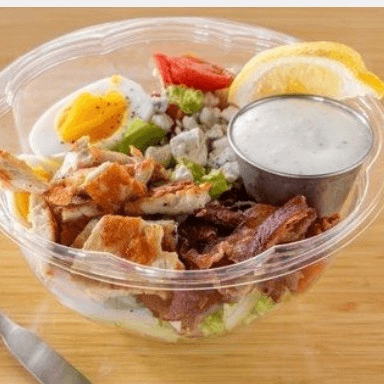 Grilled chicken breast, bacon, avocado, blue cheese, boiled egg, chopped romaine, grape tomatoes, onions and cucumber with choice of dressing.