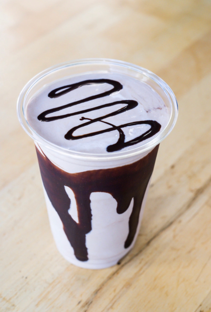 Old Fashioned vanilla ice cream mixed with 3 pumps of blackberry syrup & milk.