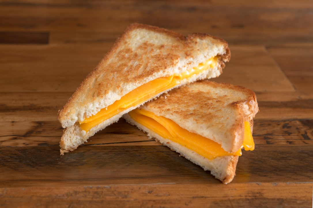 Combination of 2 american cheese and 2 tillamook cheddar cheese on sourdough bread.