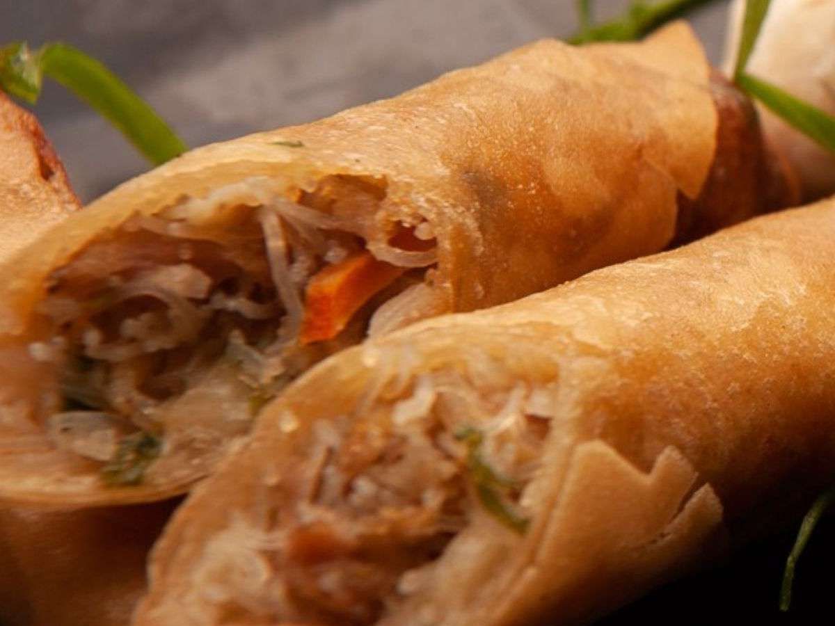 Fried egg rolls filled with marinated ground pork, pancit noodles, and a blend of mixed veggies.