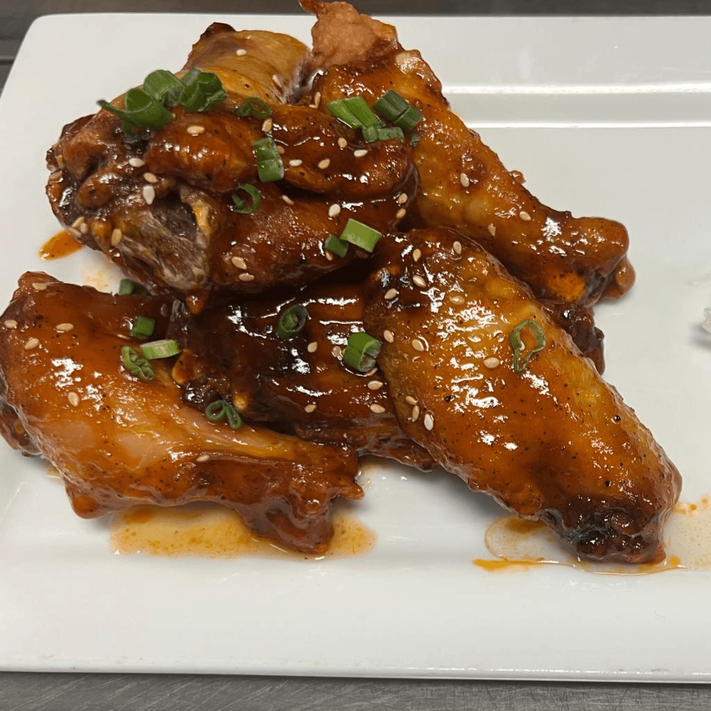 Five crispy wings served with your choice of tangy salt and vinegar, savory garlic shishito, honey kimchi sauce, and mango bbq.