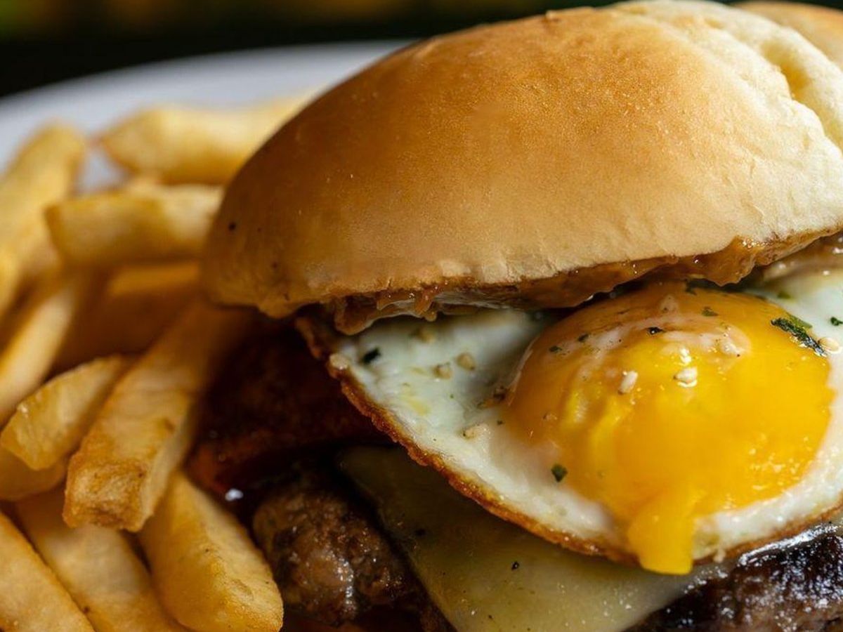 A 6oz sirloin patty topped with savory Portuguese sausage, fresh lettuce, creamy Havarti cheese, and garlic aioli, finished with a sunny-side-up egg. Served with fries.