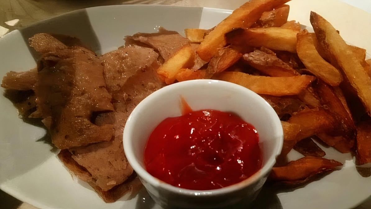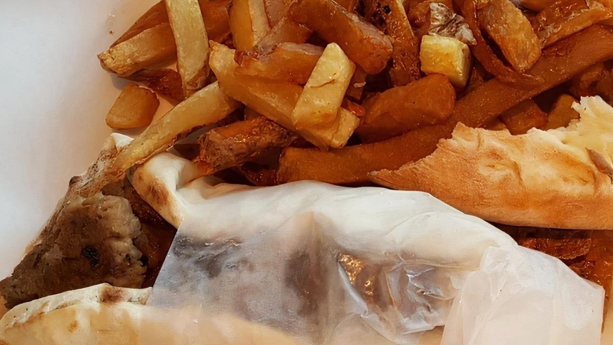 Kids portion plain beef & lamb shawarma meat with side kids fries. Gluten free available