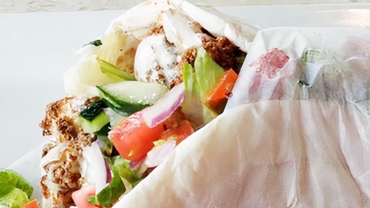 Authentic beef & lamb shawarma topped with onions, parsley, tomatoes, toum, hummus & tahini. Gluten free available