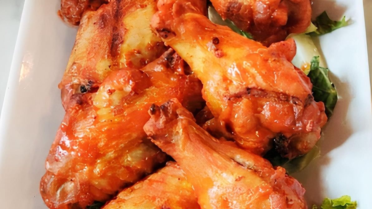 Gluten free. 8 grilled chicken wings, tossed in hot sauce & served with toum