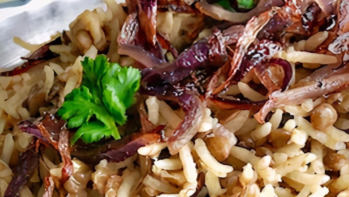 Vegetarian. Gluten free. Tanoor signature lentils & rice with caramelized onions, tzatziki & your choice of one side order (includes 1 pita)