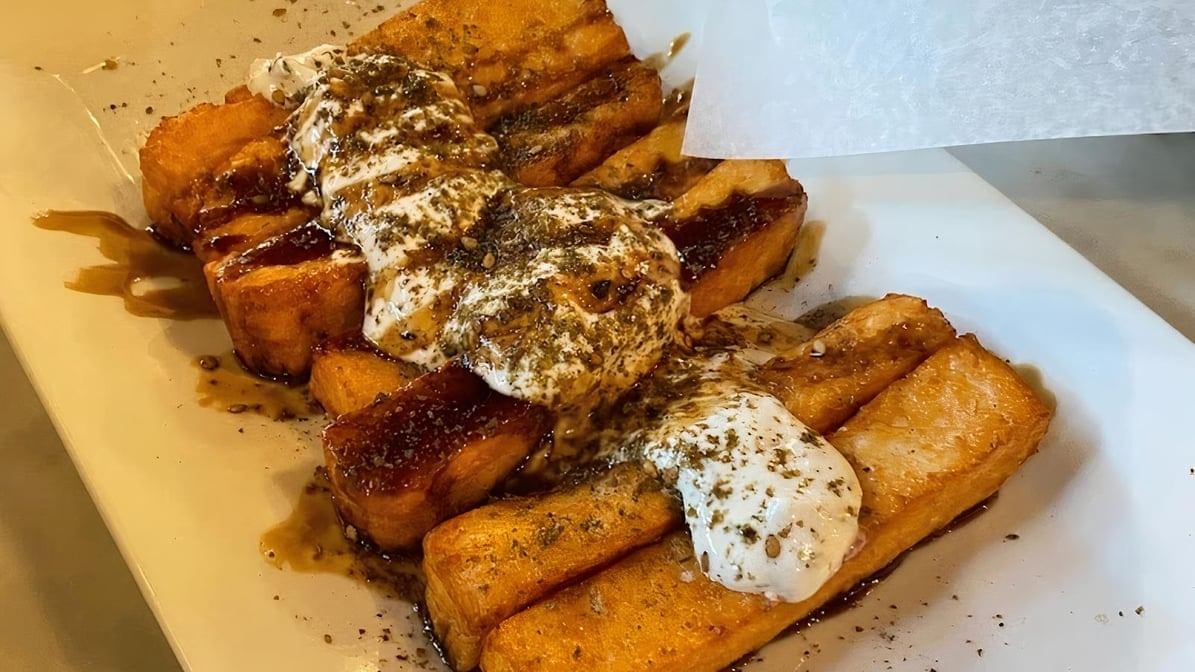 Vegetarian. Gluten free. Fries topped with toum & Aleppo pepper, served with a side of Tanoor signature batata harra sauce