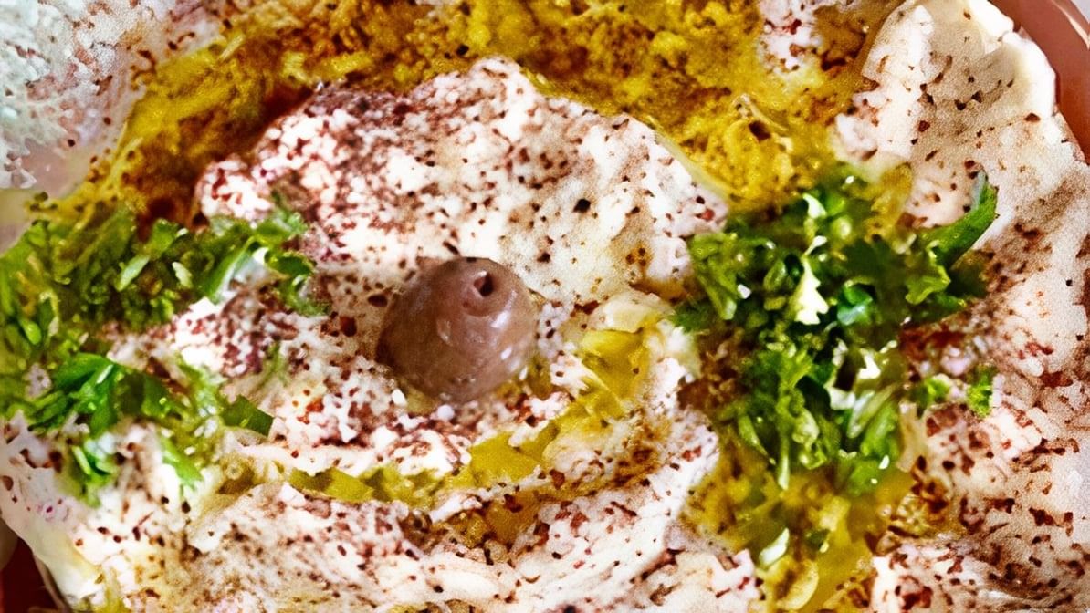 Vegan. Gluten free. Traditional Lebanese breakfast. Stewed chickpeas, fava beans, lemon & garlic, served with veggies, herbs, & olive oil (includes 2 pita)
