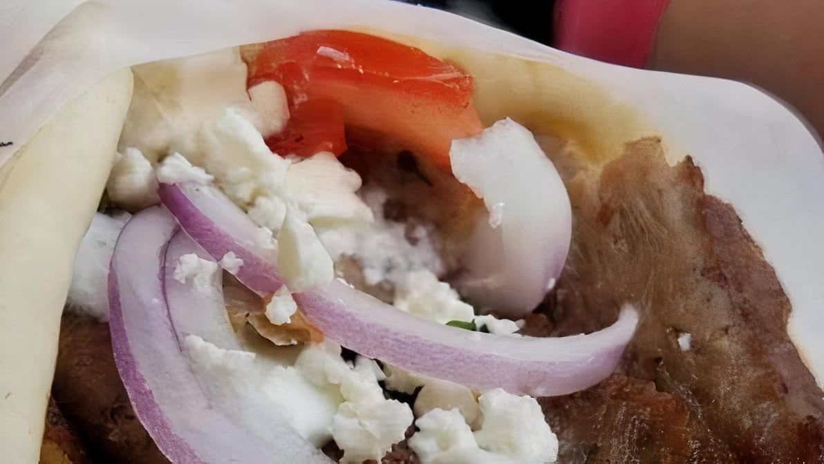 Beef & lamb seasoned & cooked on the doner topped with tomatoes, onions, hummus, feta & tzatziki