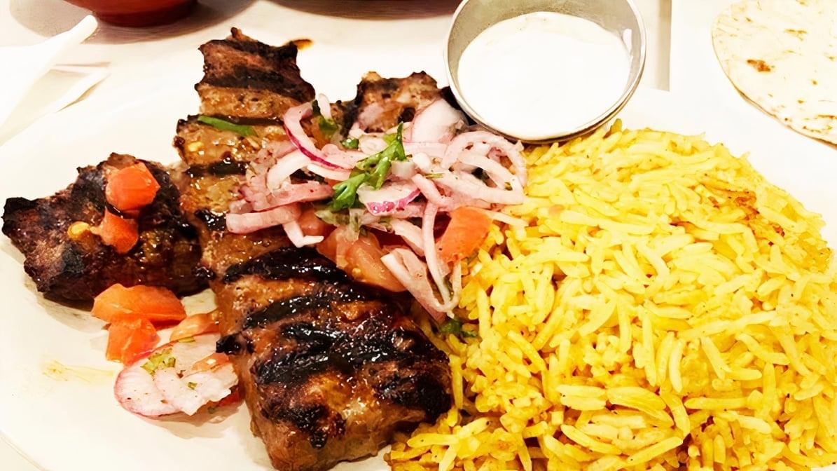 Gluten free. Ground beef & lamb kabob with tomatoes, onions, parsley, tzatziki, your choice of rice & one side order (includes 1 pita)