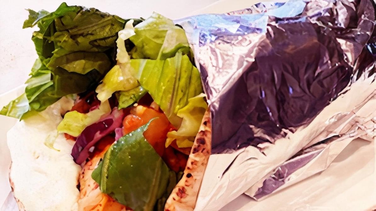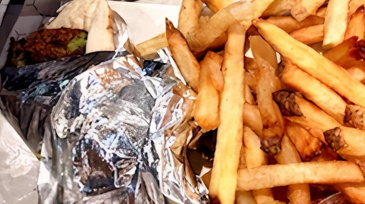 Kids portion plain beef & lamb shawarma meat wrapped in small pita with side kids fries