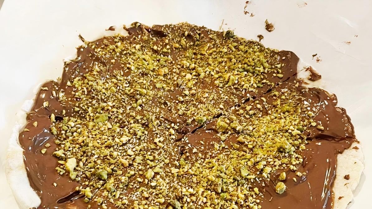 Vegetarian. Flatbread baked in Tanoor oven with nutella and pistachios. Gluten free available