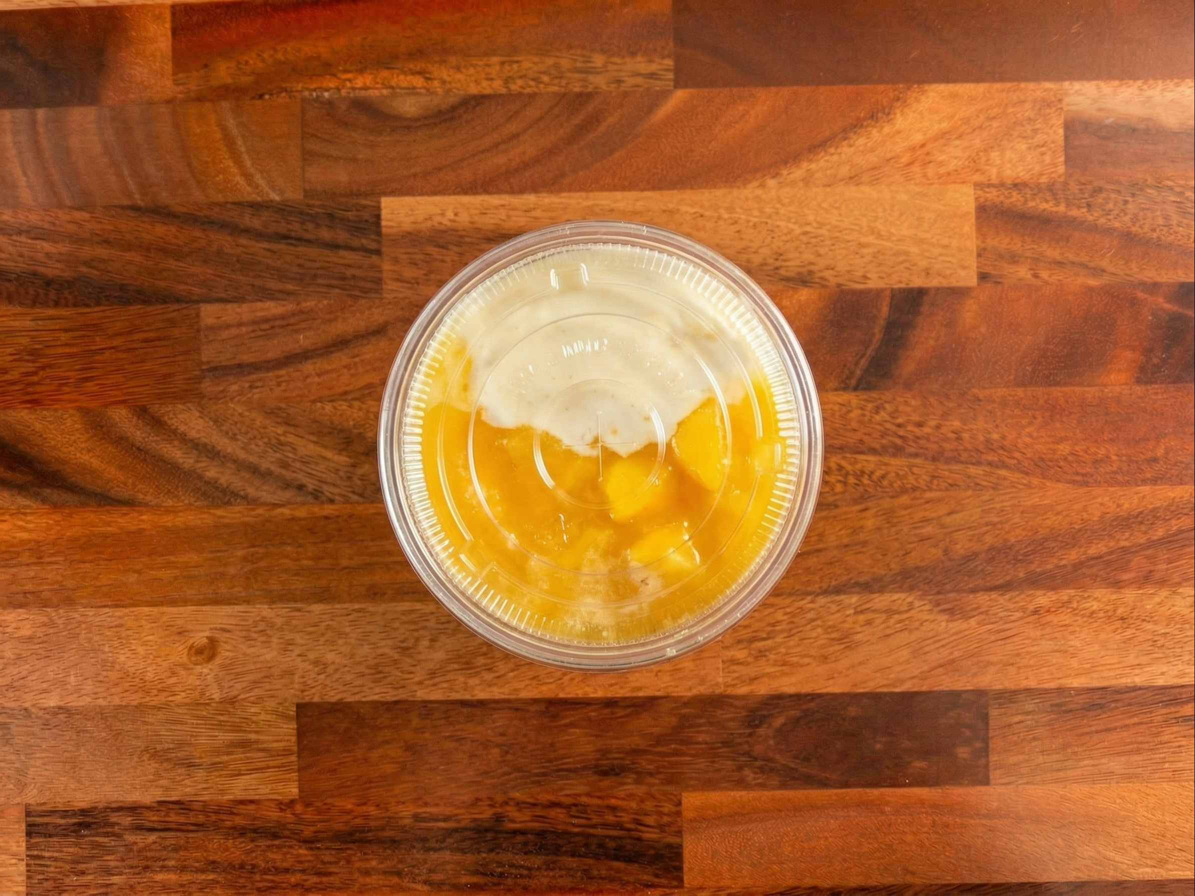 Grated cassava baked ube halaya, coconut milk, butter, sugar and milk.