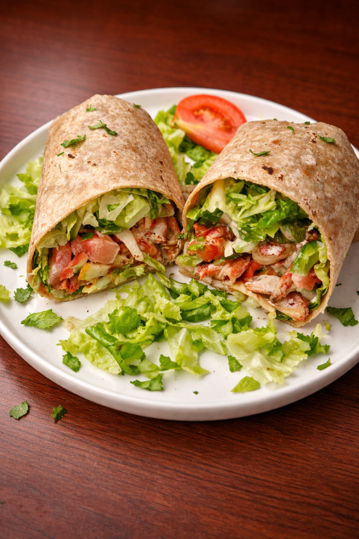 Our chicken tikka strips wrapped in whole wheat tortilla with lettuce, tomatoes, cucumbers, and bell peppers, finished with Cedars Secret Sauce. A hearty classic on the go.