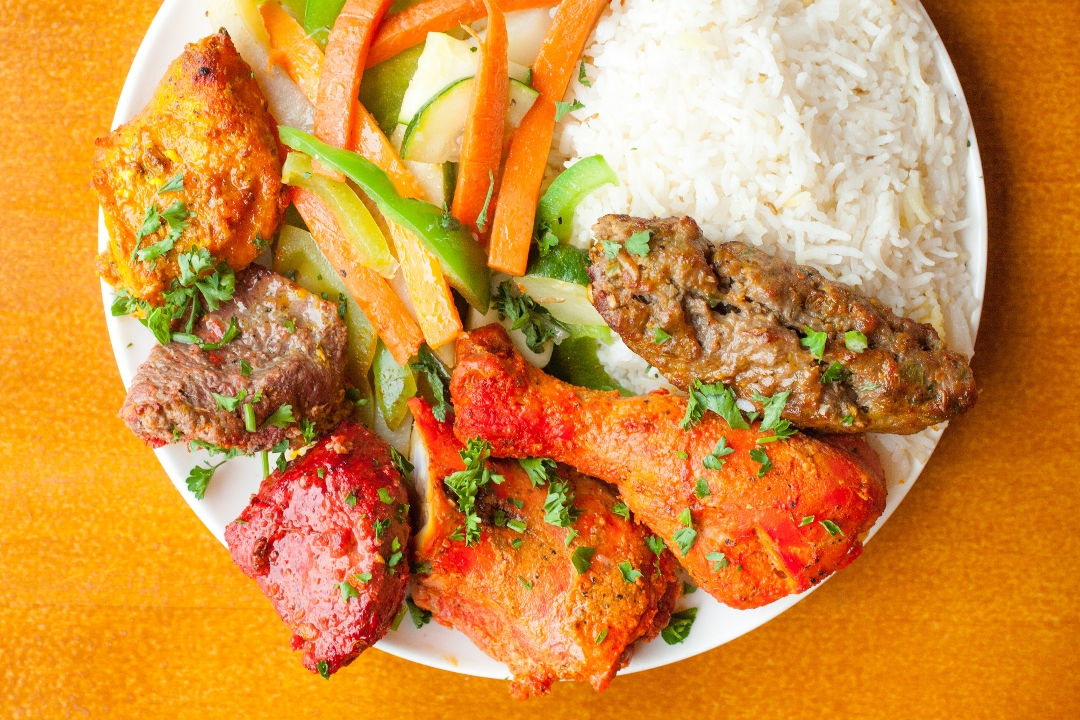 All in one. An assortment of tandoori specialties: Chicken, lamb, beef, and fish. Served with basmati rice, sauteed vegetables and our famous mint and tamarind chutneys.