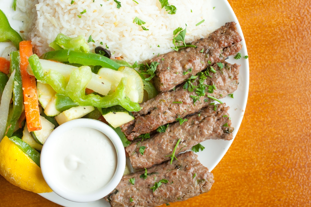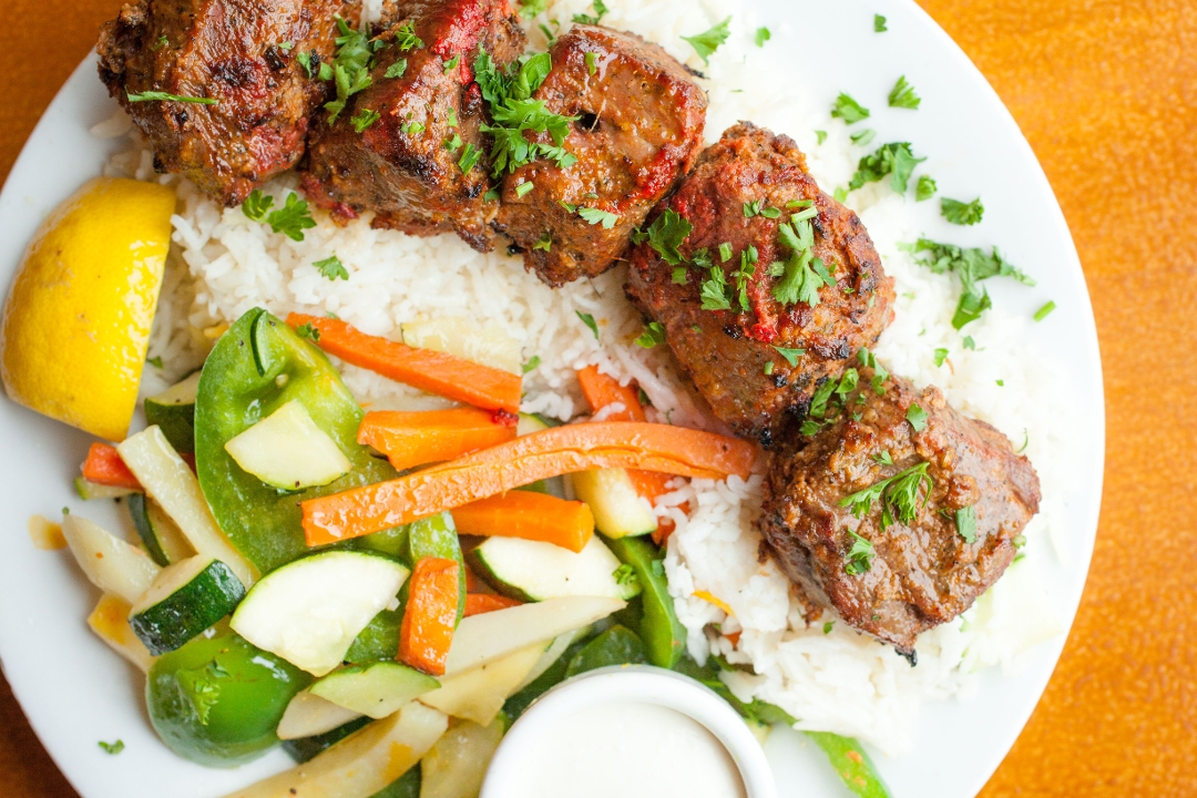 Tender fillet of lamb kabobs marinated in a special sauce and skewered with onions and tomatoes. Served with rice and fresh sauteed vegetables.