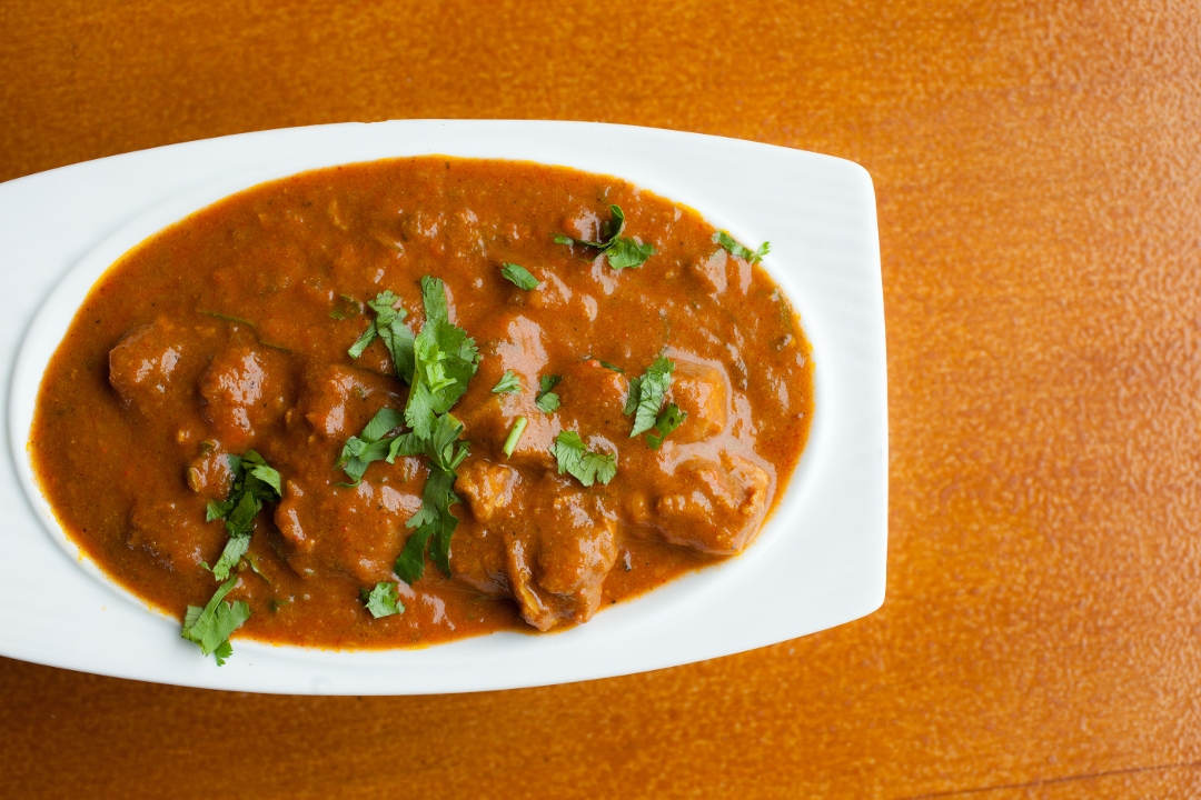 A traditional brown curry prepared with tomatoes, onions and fresh herbs.