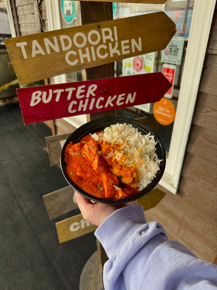 Our signature butter chicken with basmati rice, packed with bold spices and creamy tomato flavor.