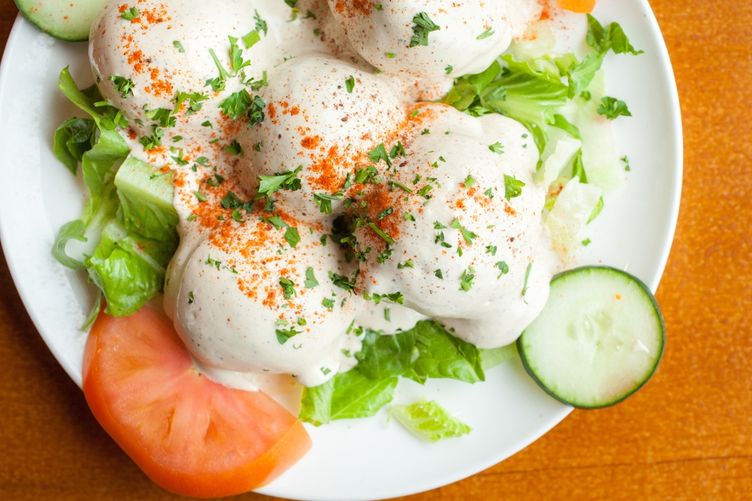 Cucumbers mixed with yogurt, mint, olive oil and a touch of garlic.