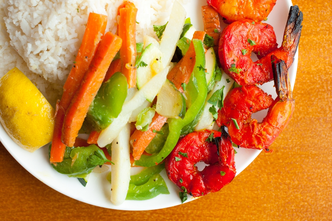 Combination of Shish Kabob, Beef Kabob, Shish Taouk, Prawns & Grape leaves. Served on a bed of rice & fresh vegetables.